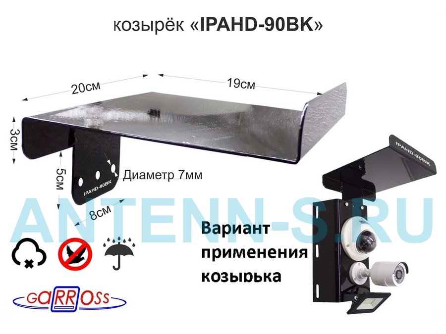 Козырёк для камер видеонаблюдения "IPAHD-90BK-90395" черный для кронштейнов IPAHD, сталь 2мм,19х20см