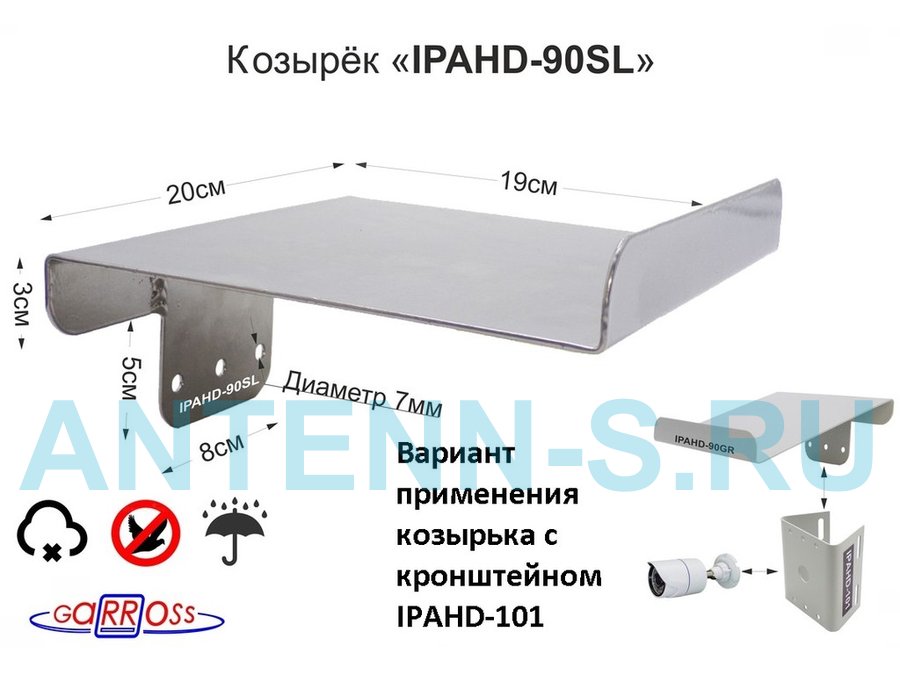 Козырёк для камер видеонаблюдения "IPAHD-91SL-216852" серебристый для кронштейнов IPAHD, 2мм,19х20см