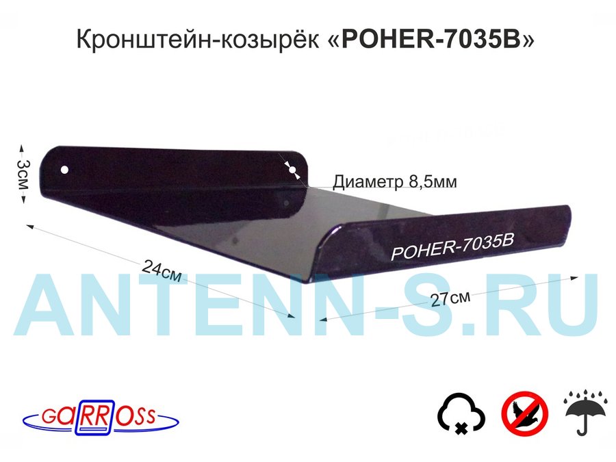 Кронштейн-козырёк "POHER-7035B-161277" для защиты камеры от дождя, солнца, чёрный,сталь 2мм, 24х27см