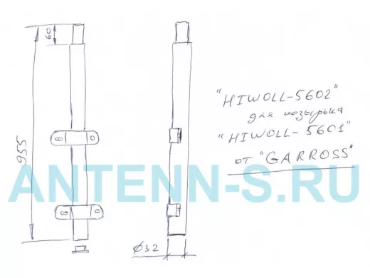 Кронштейн "HIWOLL-5602GR" серый, обжатая труба с 4 отв., 0,9м, подходит для козырька "HIWOLL-5601GR"
