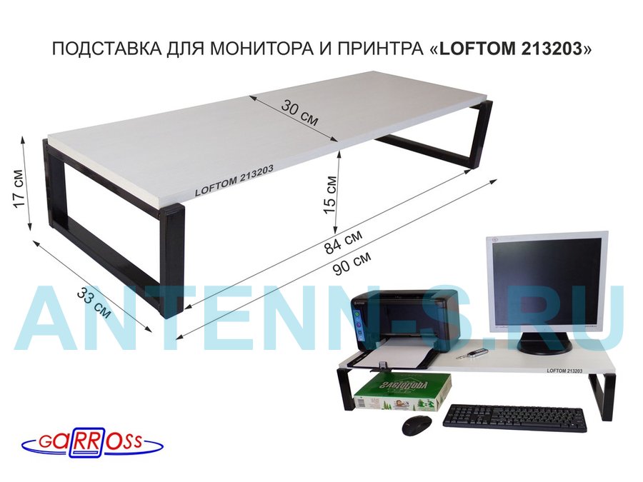 В корзину Купить в 1 клик Подставка для монитора и принтера, высота 17см, черный "LOFTOM 213203" полка 90х30см, сосна выбелен.