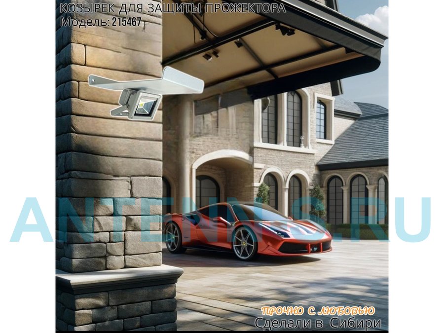 Козырёк для защиты прожектора от дождя с желобком "POHER-215467" серый 24 х 24 см сталь 2 мм
