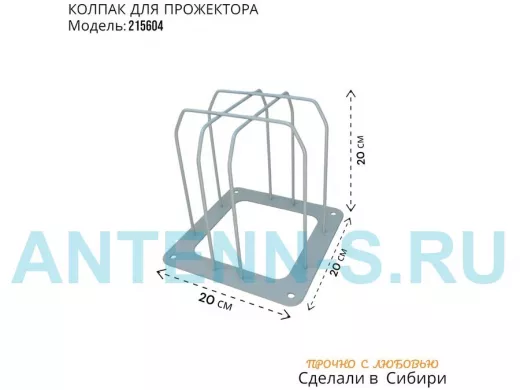 Колпак кожух для прожектора или лампы освещения со скосами 20х20см "POHER-215604" вылет 20см, серый