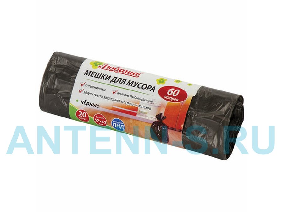В корзину Купить в 1 клик Мешки для мусора 60литров "BR-78287", черные в рулоне 20 штук, ПНД, 5мкм, 57х65см (+5%), эконом