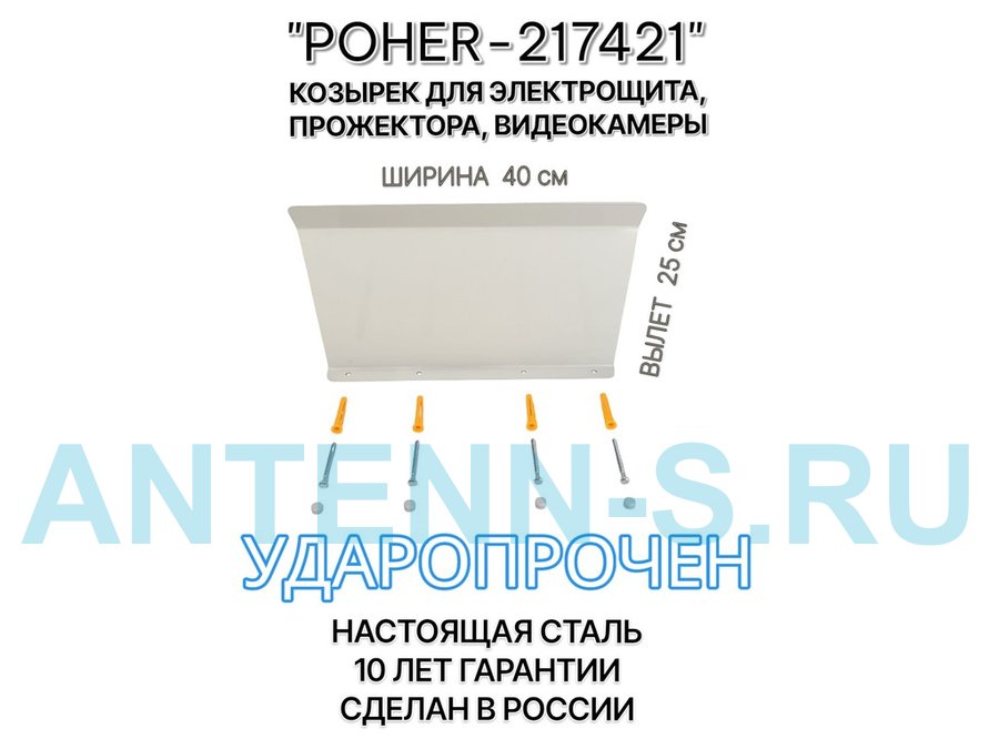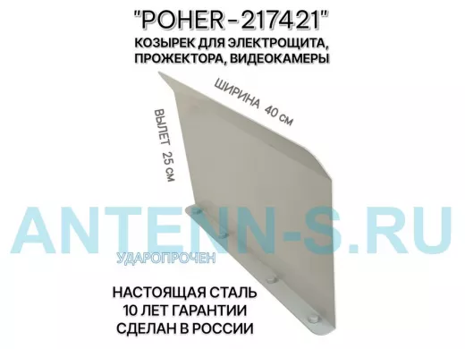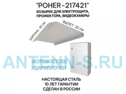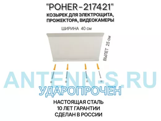 "POHER-217421" козырёк для защиты приборов и устройств от дождя и сосулек, ширина 41 см, вылет 27 см, стальной