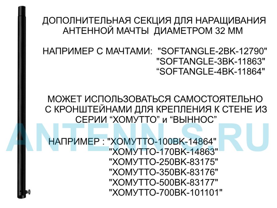 Секция антенная универсальная черная 96 см обжата, с болтом "SOFT ANGLE 1B-14439" для мачт диам 32мм