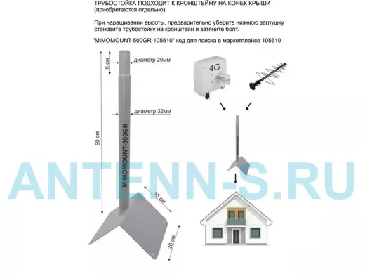 Применяется для наращивания длины антенных кронштейнов, совместима с креплениями к стене и на конек крыши:
