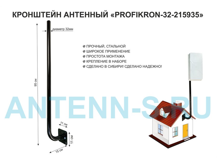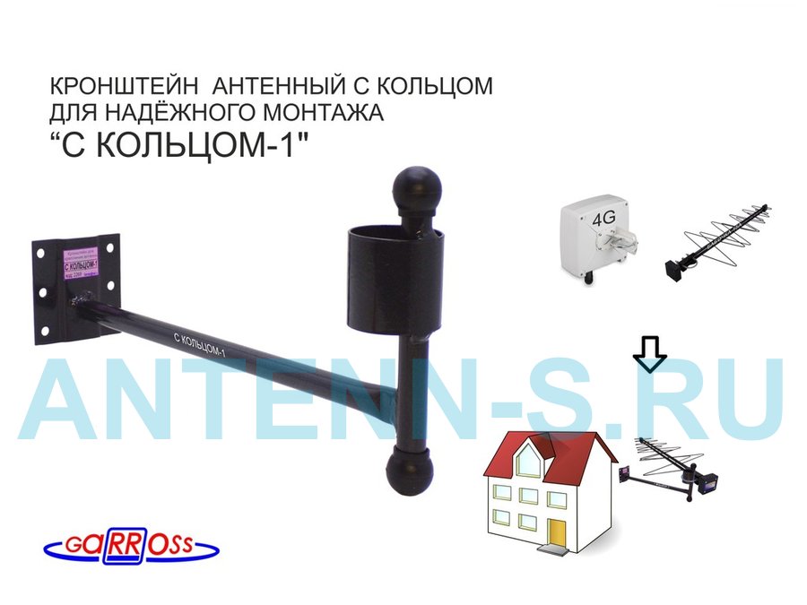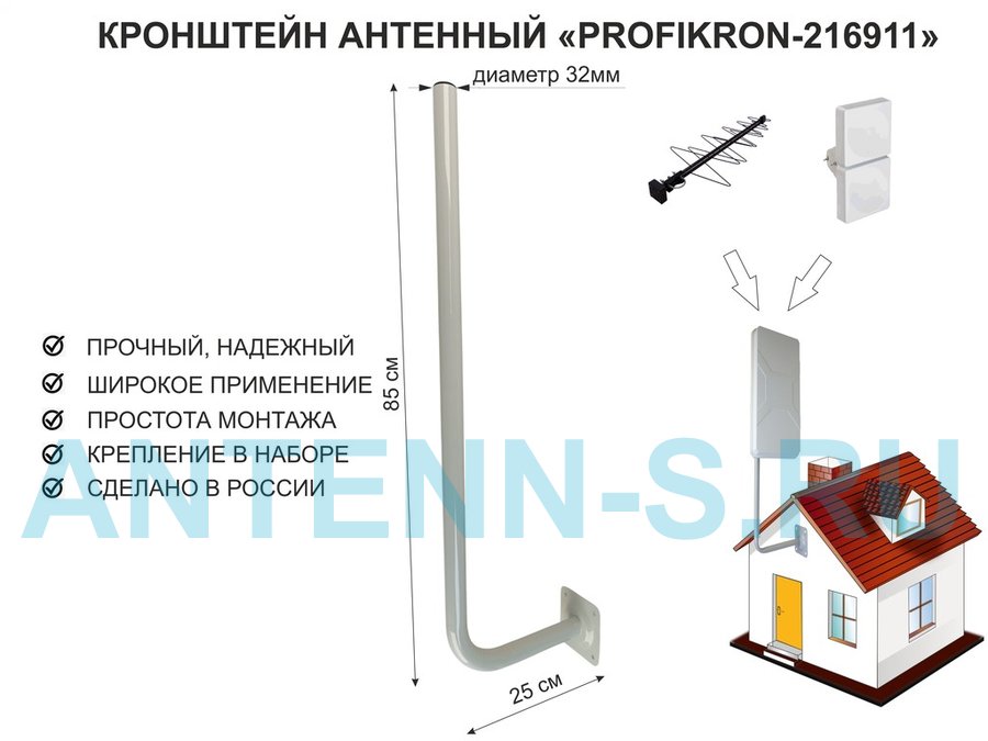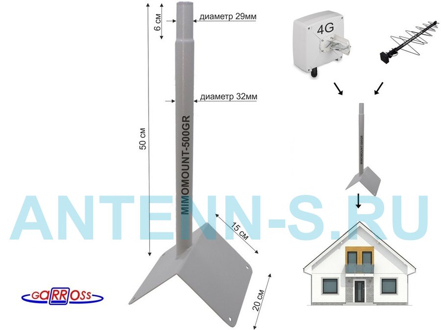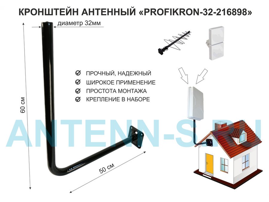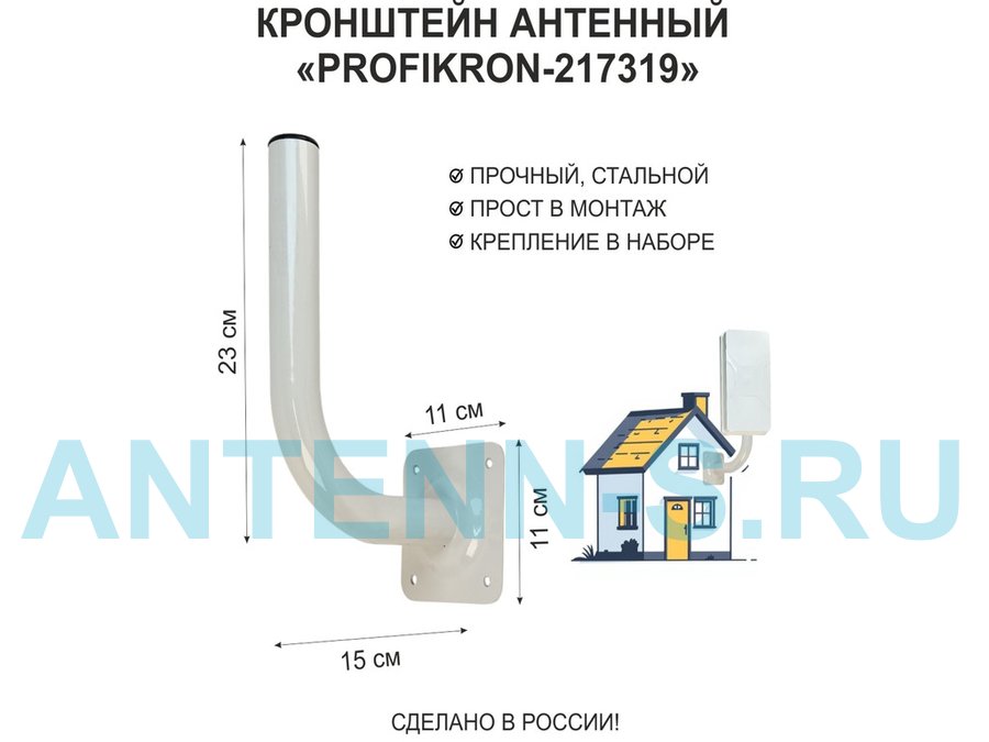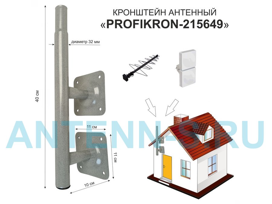 Кронштейн антенный на торец крыши, поворотный, вверх 23 см, 5х15см "ТОРЕЦКРЕП-217376" серый,диам32мм