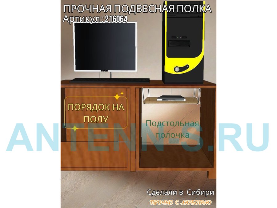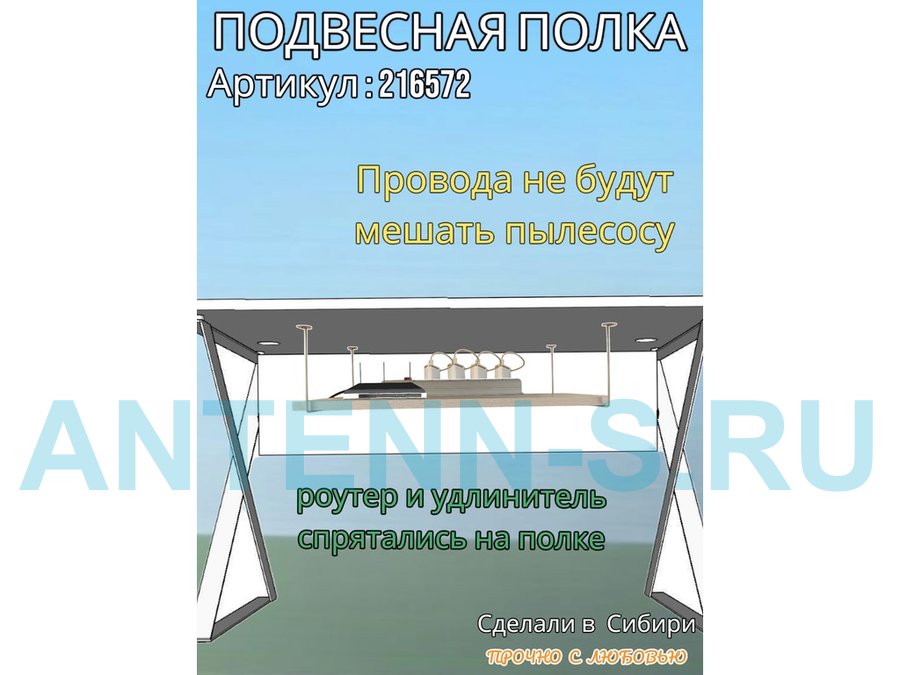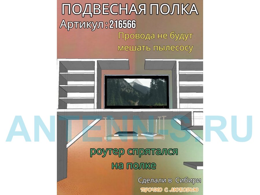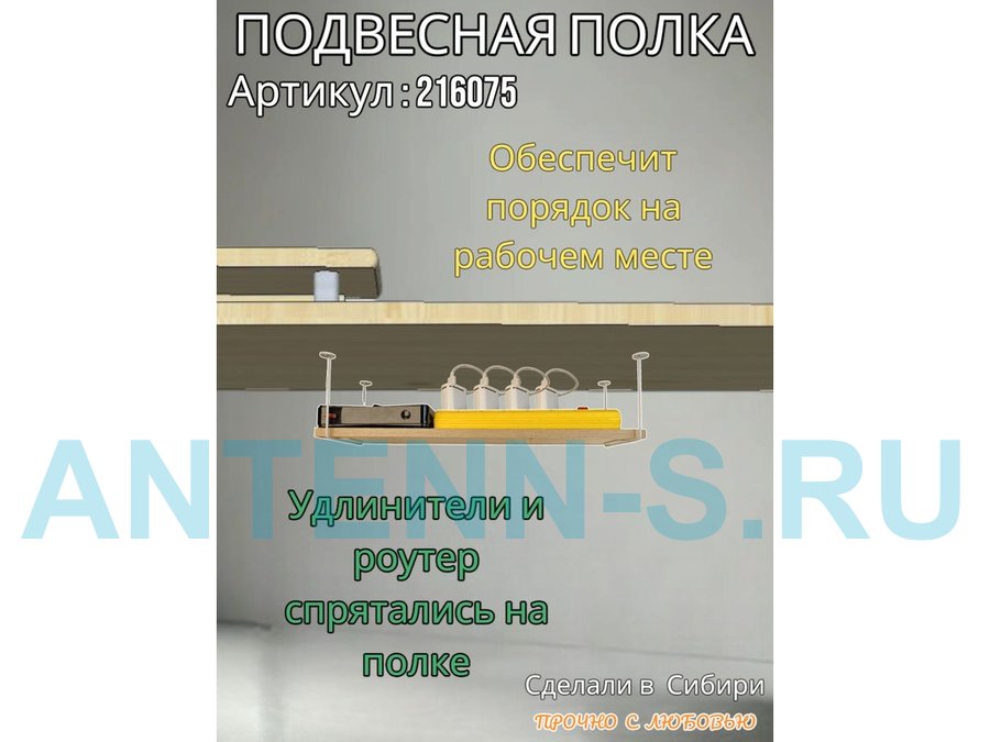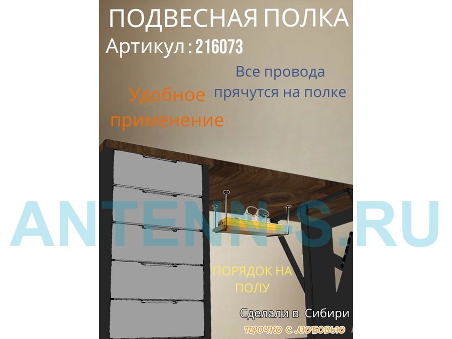 Полка подвесная для видеорегистратора, сетевого фильтра, роутера 30х60см "LOFTOM 216572" сосна выбел