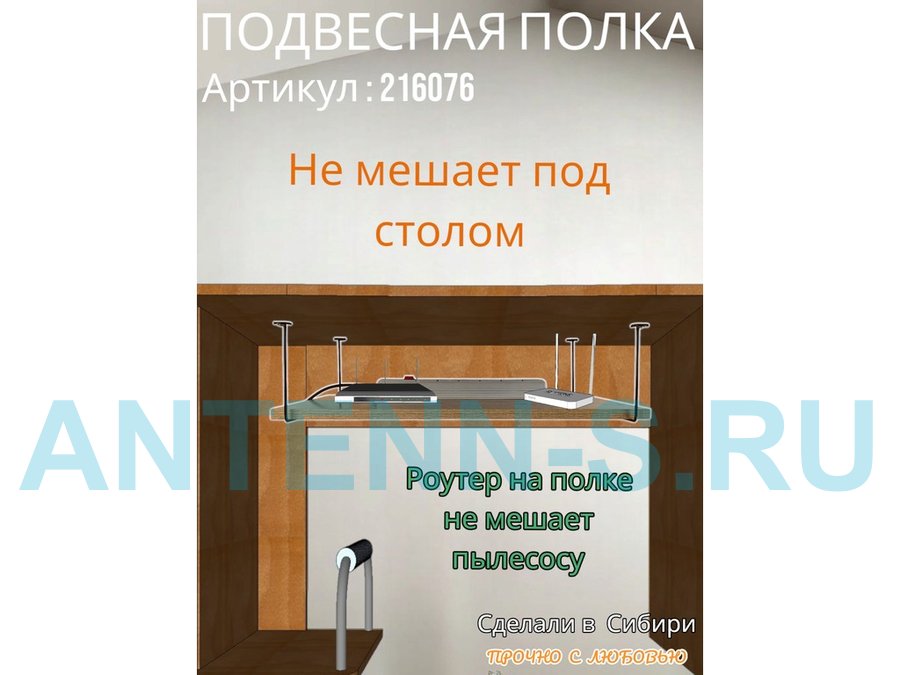 Полка подвесная для фильтра, роутера, проводов,15х40см "LOFTOM 216145" серые опоры, сосна выбеленная
