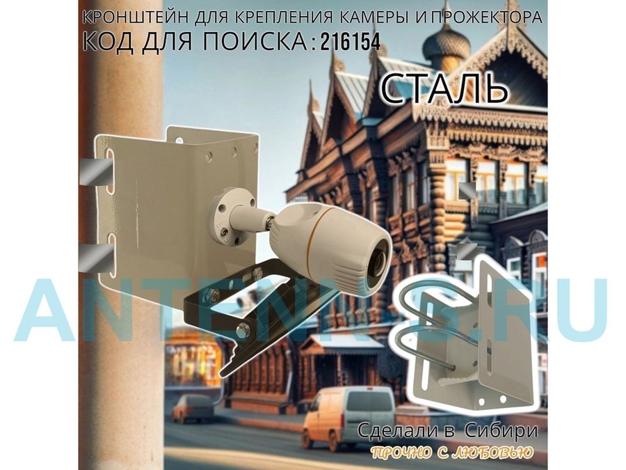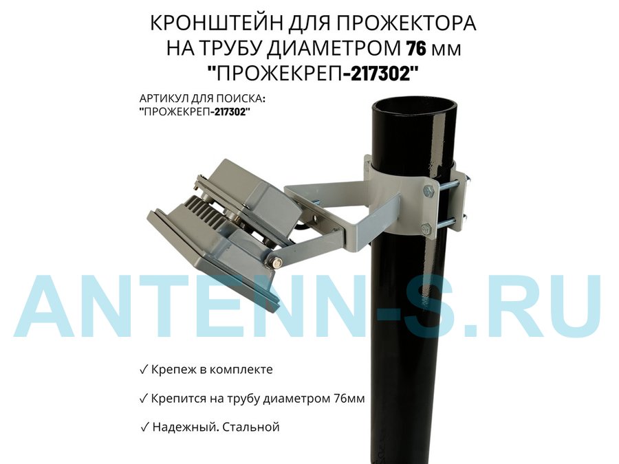 Кронштейн универсальный на трубу или столб для камеры или прожектора "ПРОЖЕКРЕП-216154" сталь, серый