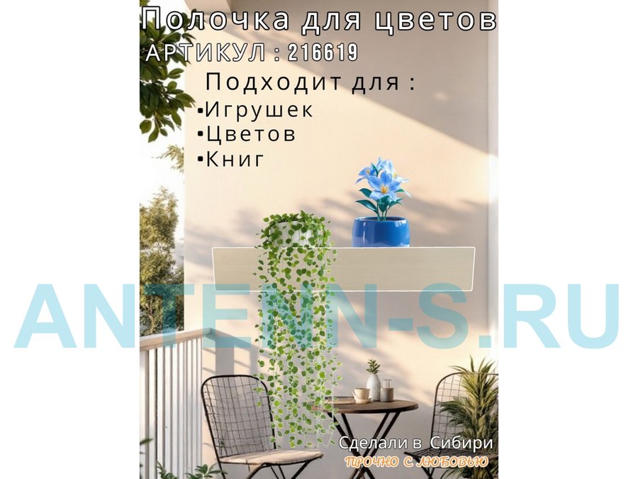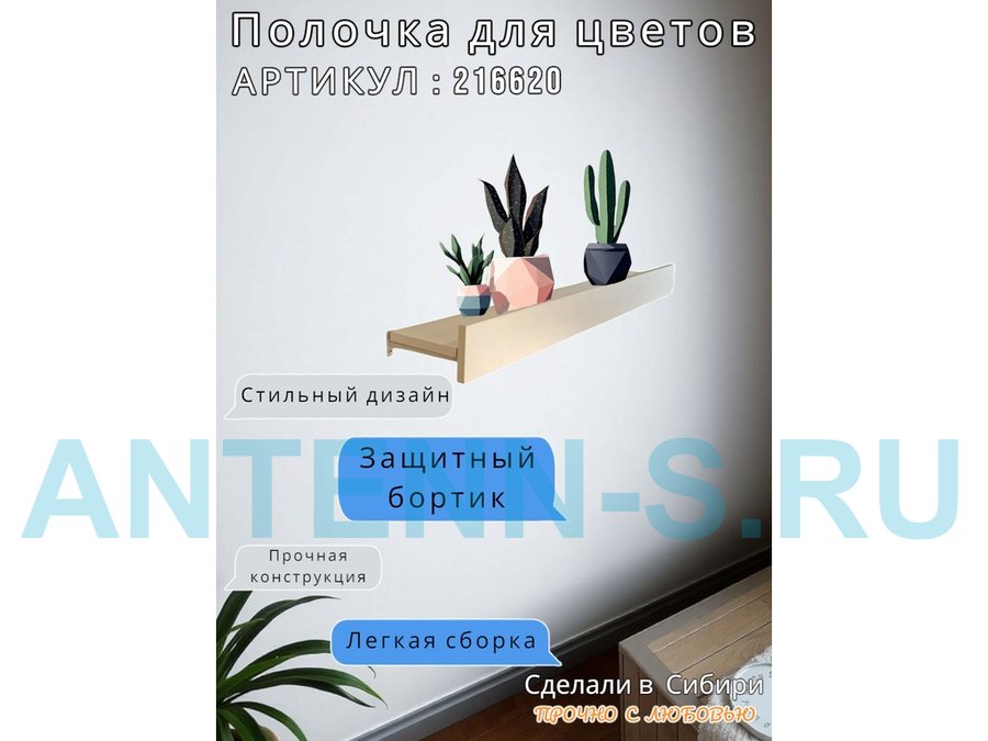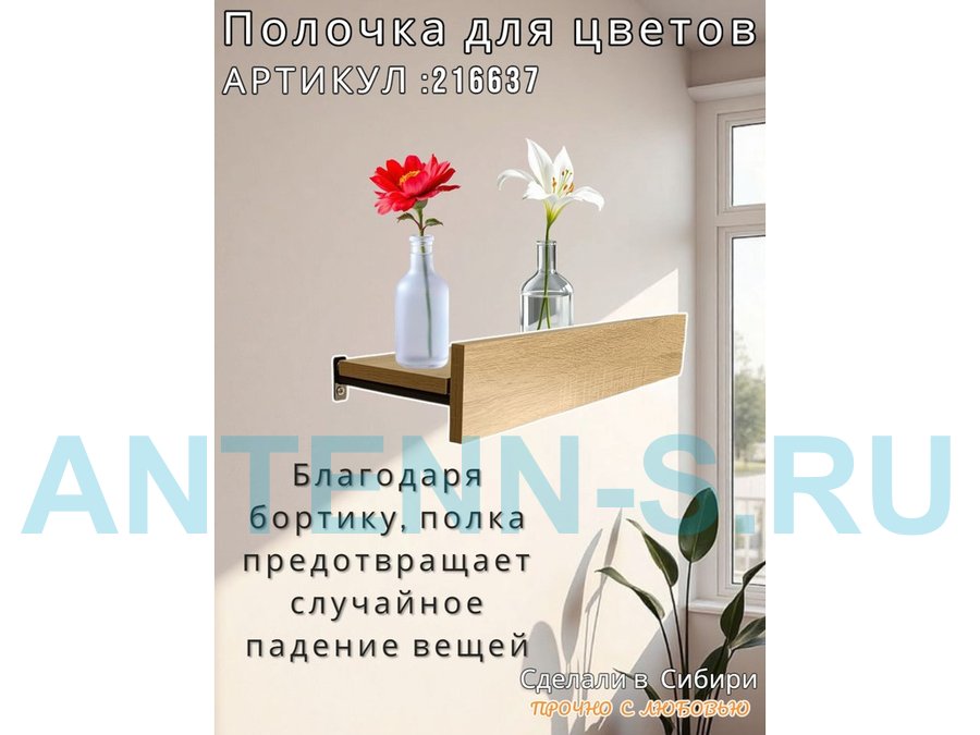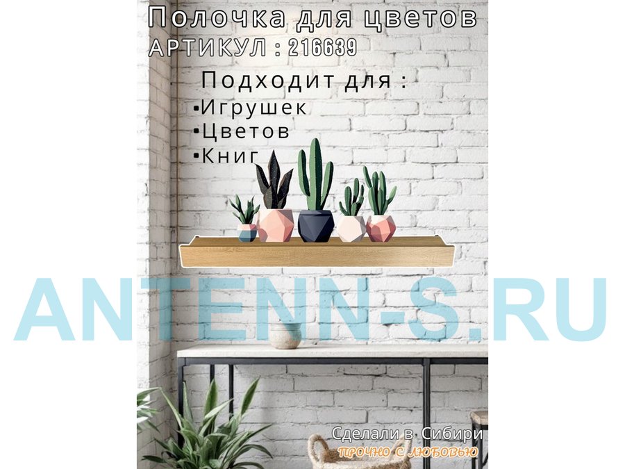 Настенная полка с бортиком для цветов "ЯиСАД-216620" высота 10 см, 120х15см, сосна выбеленная, серый
