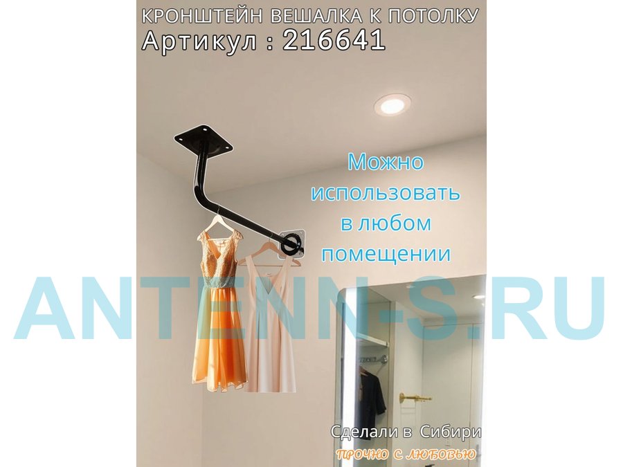 Кронштейн для плечиков с одеждой, вешалка к потолку 50 х 15 см "ПРОСЕКИНО 216641" сталь, чёрный,22мм