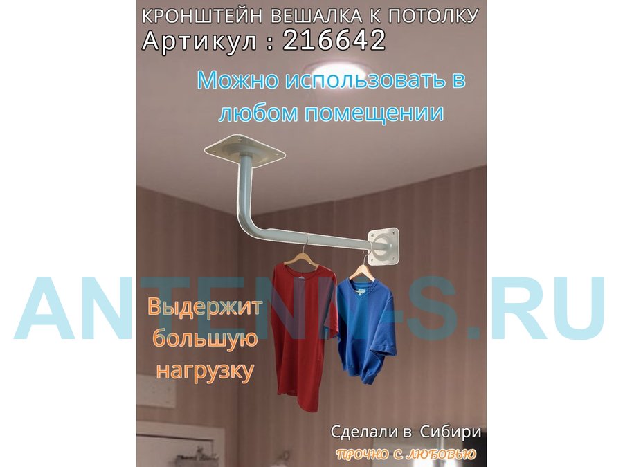 Кронштейн для плечиков с одеждой, вешалка к потолку 50 х 15 см "ПРОСЕКИНО 216642" сталь, серый, 22мм