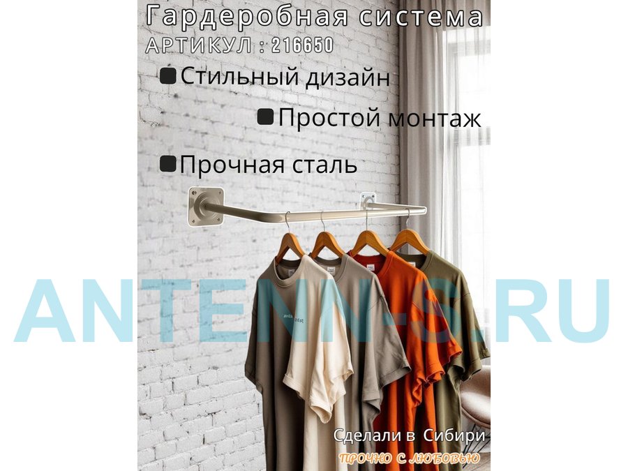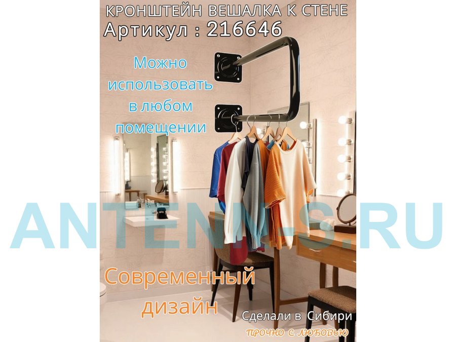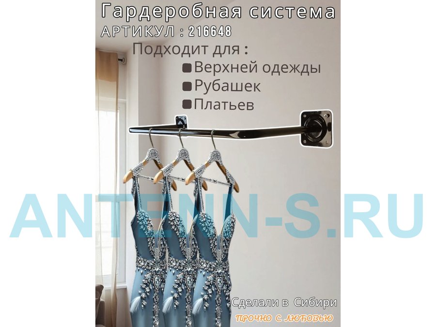 Гардеробная система для плечиков с одеждой, длина 100см, вылет 30см "ABIKFOX-217296" черный,диам32мм