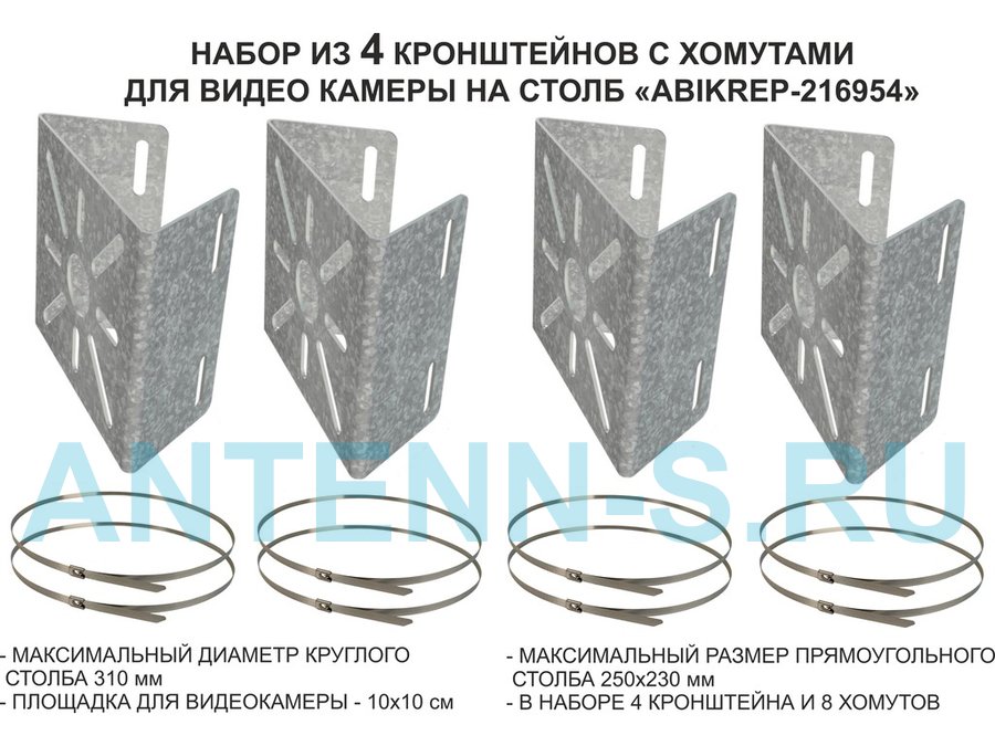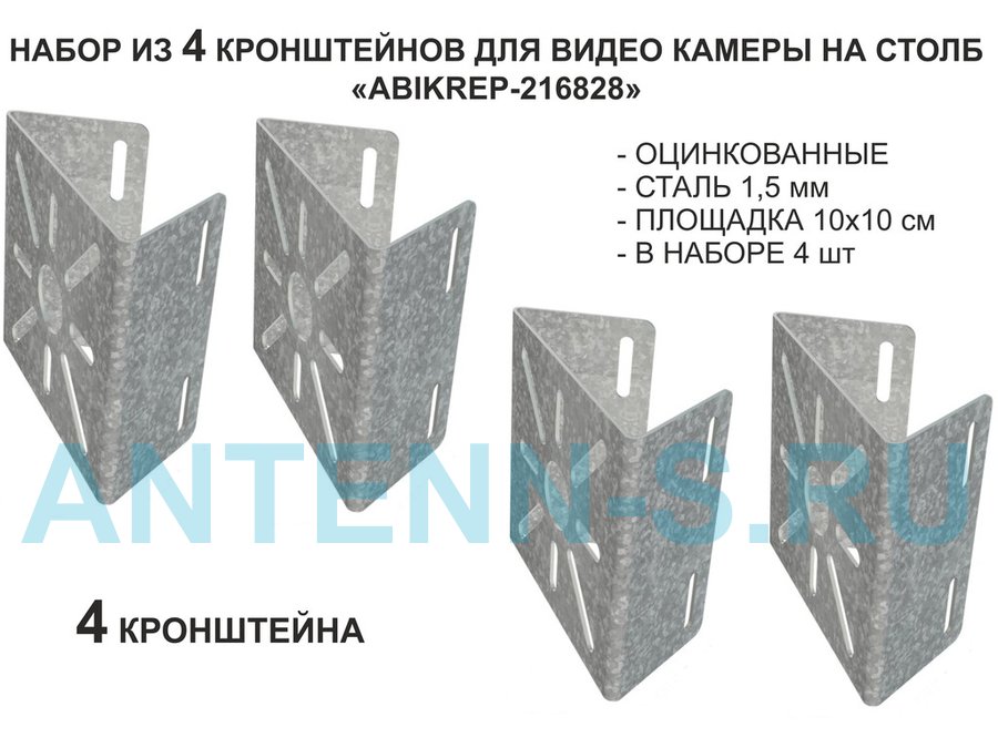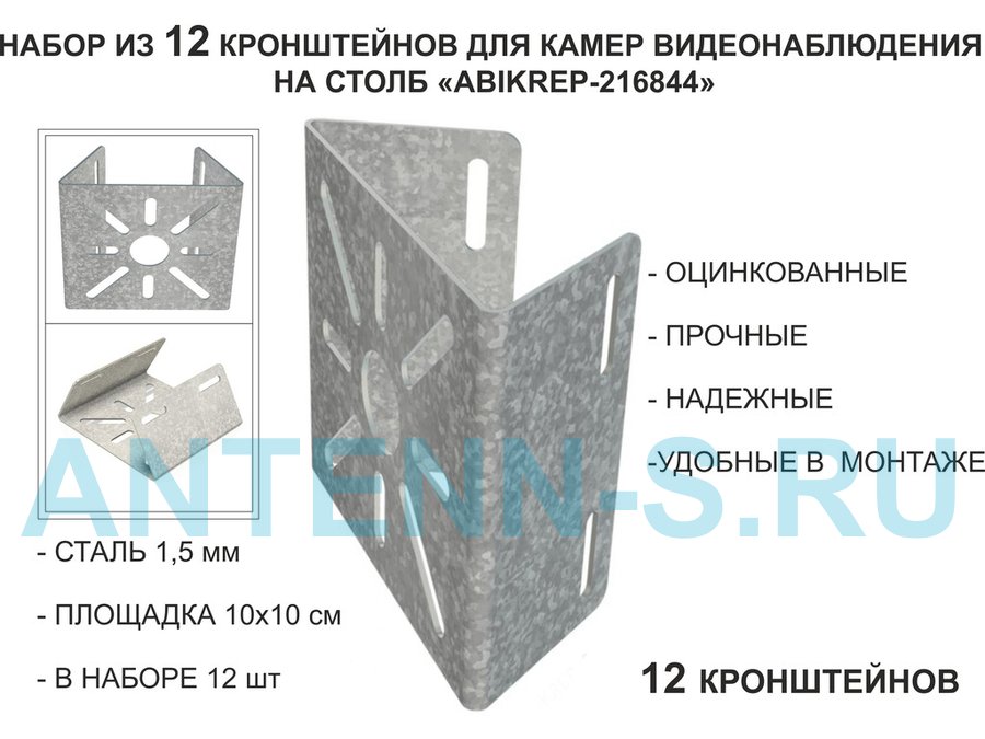 Набор 12 шт. Кронштейн оцинкованный для камеры на столб "ABIKREP-216844" 100х104мм, сталь,под хомуты