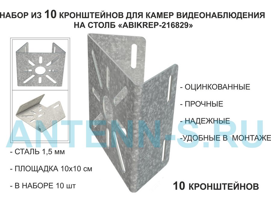 Набор 10 шт. Кронштейн оцинкованный для камеры на столб "ABIKREP-216829" 100х104мм, сталь,под хомуты