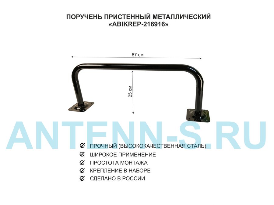 Поручень пристенный для домов снаружи и внутри, ширина 67см высота 25см "ABIKREP-216917" черный,32мм