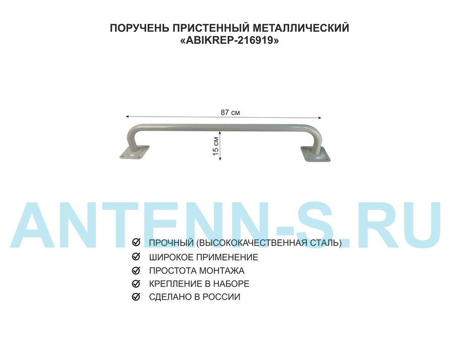 Поручень пристенный для домов снаружи и внутри, ширина 87см высота 16см "ABIKREP-216919" серый, 32мм