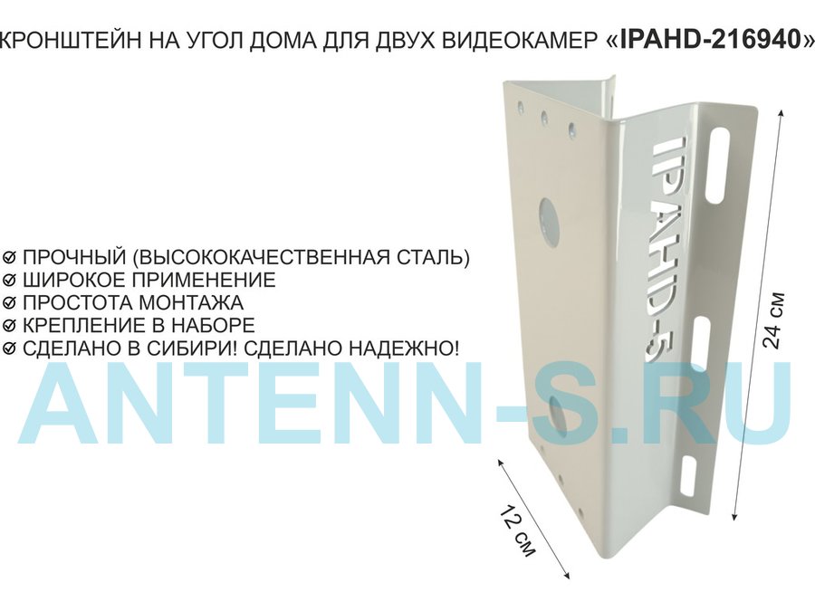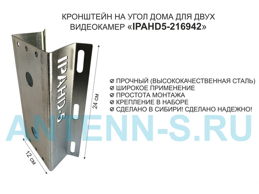 Кронштейн на угол дома для двух камер видеонаблюдения, 2 отверстия "IPAHD5-216942" оцинкован,24х12см