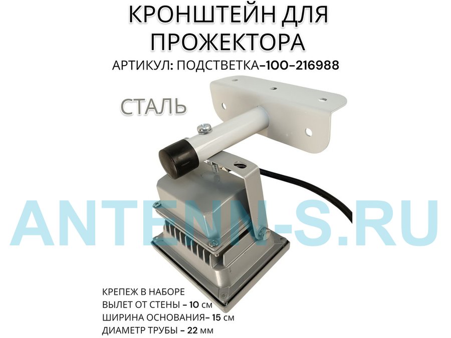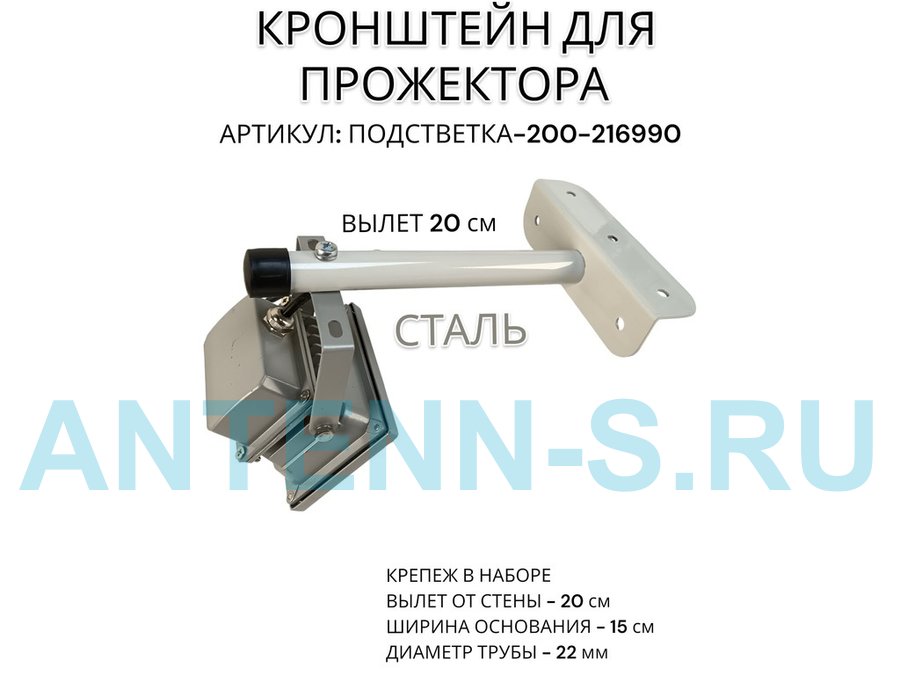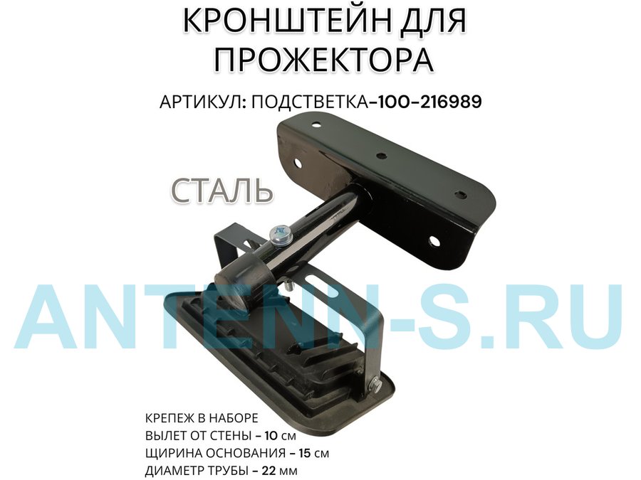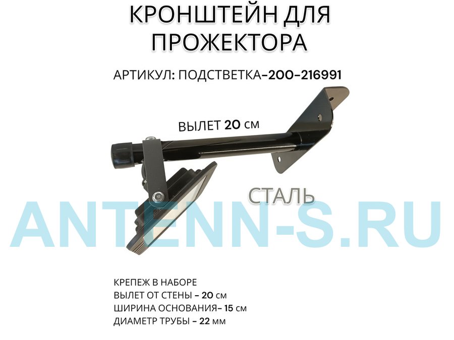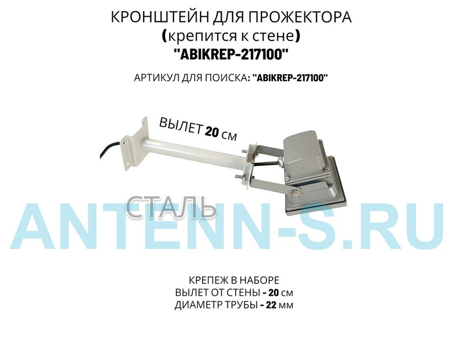 Кронштейн для прожектора к стене, диаметр 22мм, вылет 0,2 м "ABIKREP-217099" черный, основание 9х6см