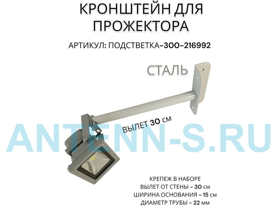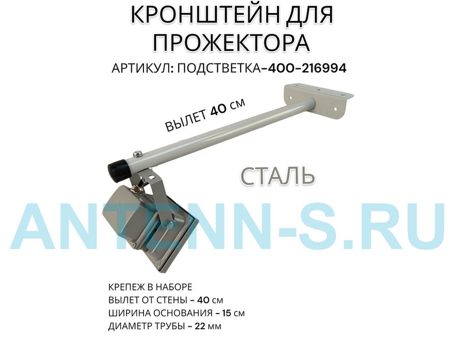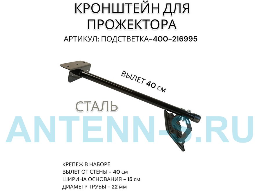 Кронштейн для прожектора к стене, диаметр 22мм, вылет 0,6 м "ABIKREP-217127" черный, основание 9х6см