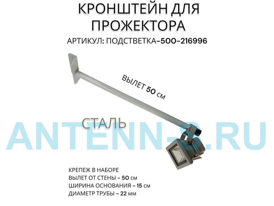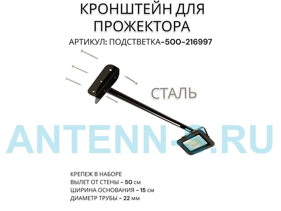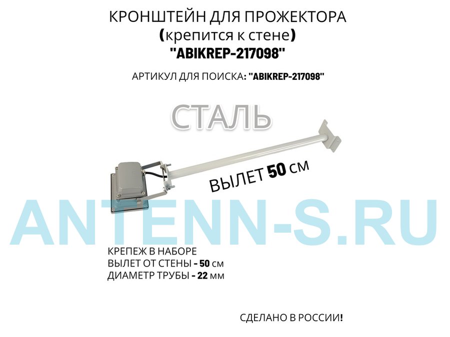 Кронштейн для прожектора к стене, диаметр 22мм, вылет 0,5 м "ABIKREP-217095" черный, основание 9х6см