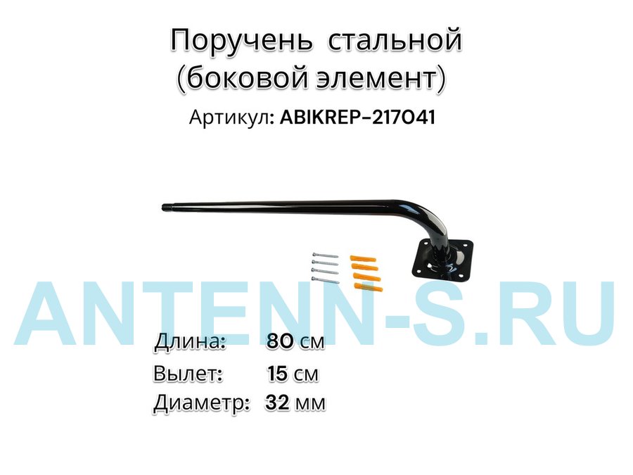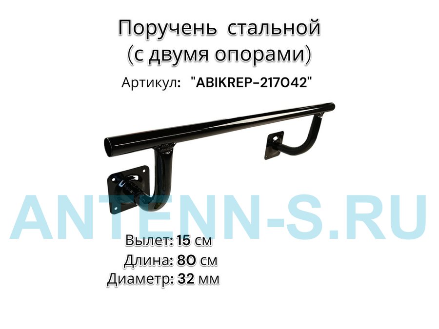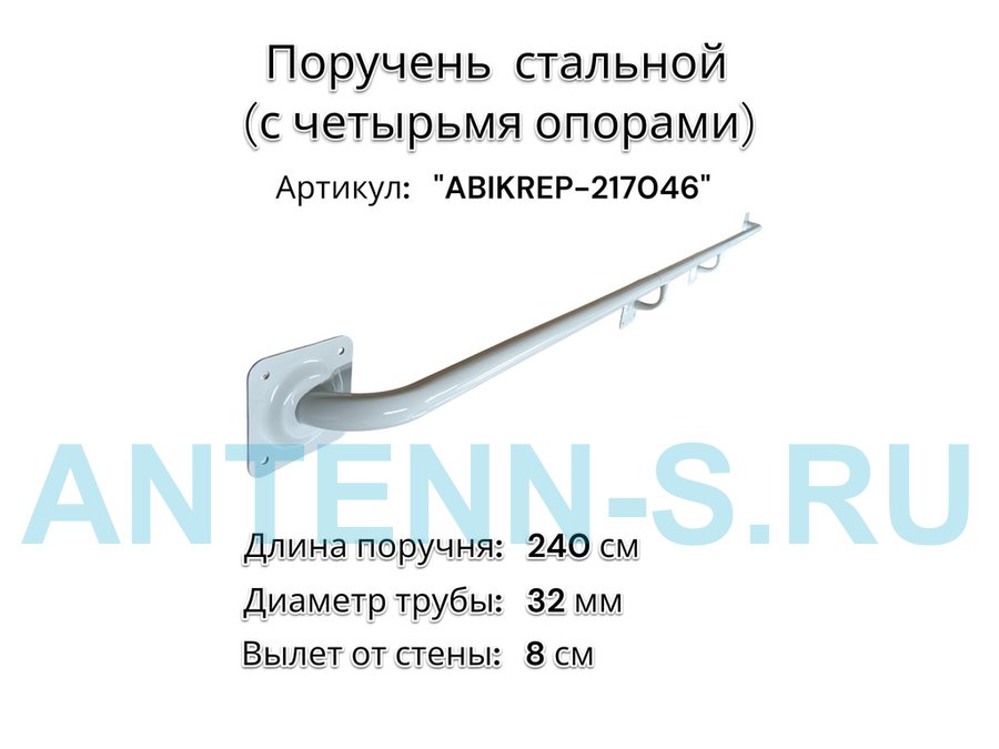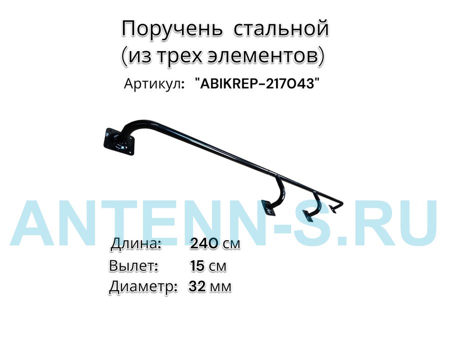 Поручень пристенный для зданий, длина 240см вылет 15см "ABIKREP-217043" черный 4 опоры, диаметр 32мм