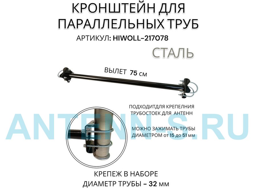 Кронштейн для параллельных труб диаметром от 15 до 51мм длина 100см "HIWOLL-217080" стальной, черный