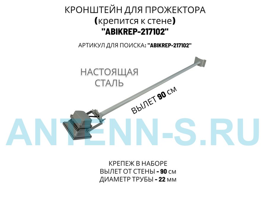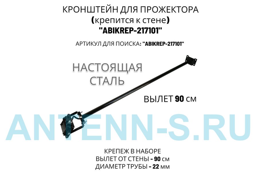 Кронштейн для прожектора к стене, диаметр 22мм, вылет 0,9 м "ABIKREP-217101" черный, основание 9х6см