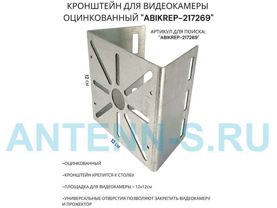 Кронштейн под коробку FOX для видеокамеры на столб оцинкованный "ABIKREP-217269" 12х12см,сталь 1,5мм