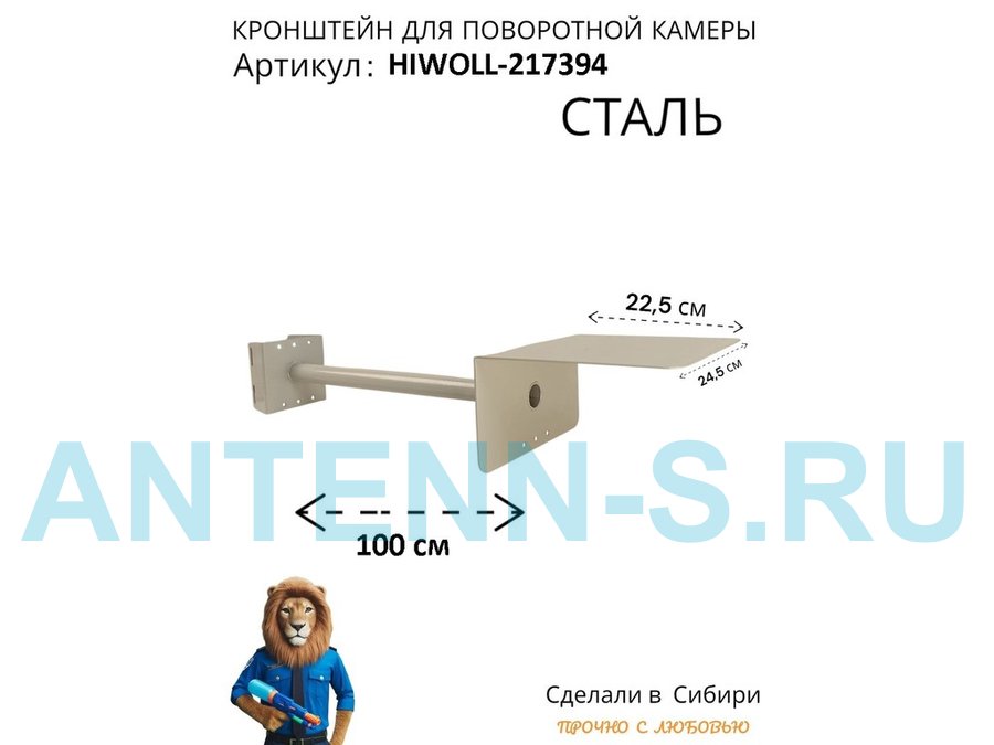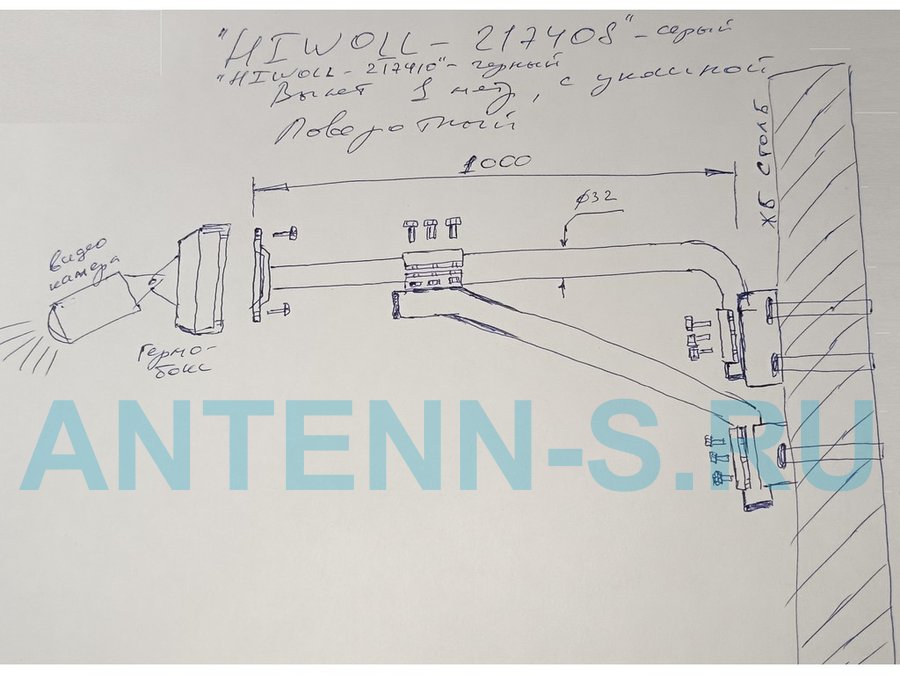 Кронштейн на столб для крепления гермобокса с видеокамерой,вылет 100 см "HIWOLL-217396" серый, сталь