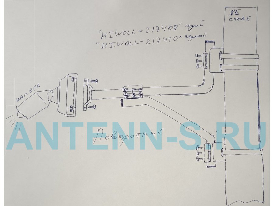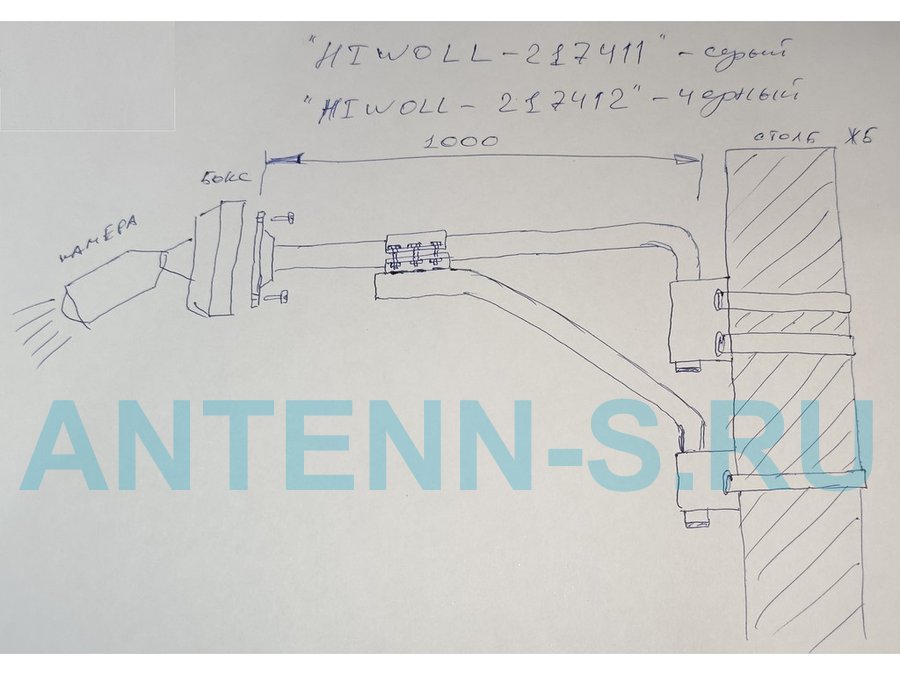 Кронштейн на столб для крепления гермобокса с видеокамерой,вылет 100 см "HIWOLL-217397" черн., сталь
