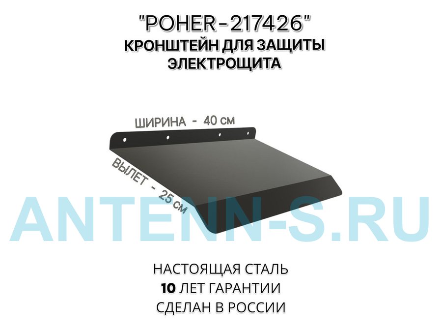 Козырёк для защиты электрощита от дождя "POHER-217426" черный, ширина 41 см, вылет 27 см, сталь 2 мм