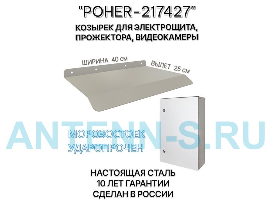 Козырёк для защиты электрощита от дождя "POHER-217419" черный, ширина 41 см, вылет 27 см, сталь 2 мм